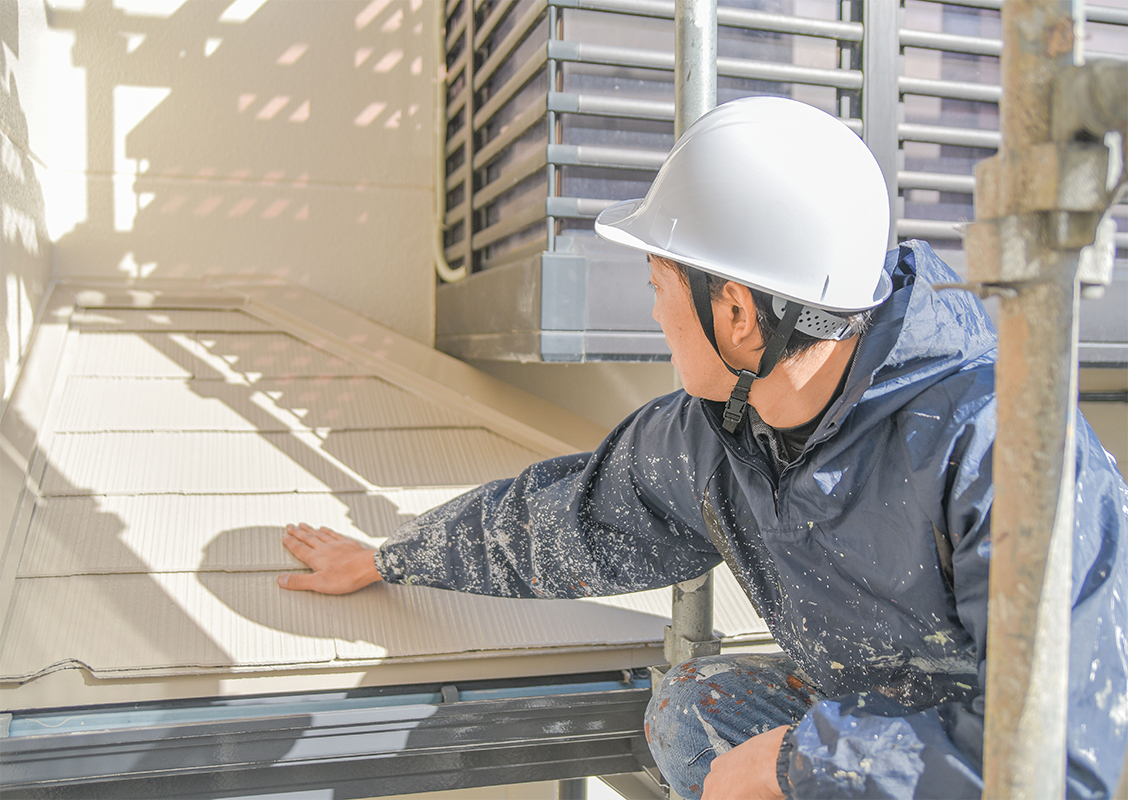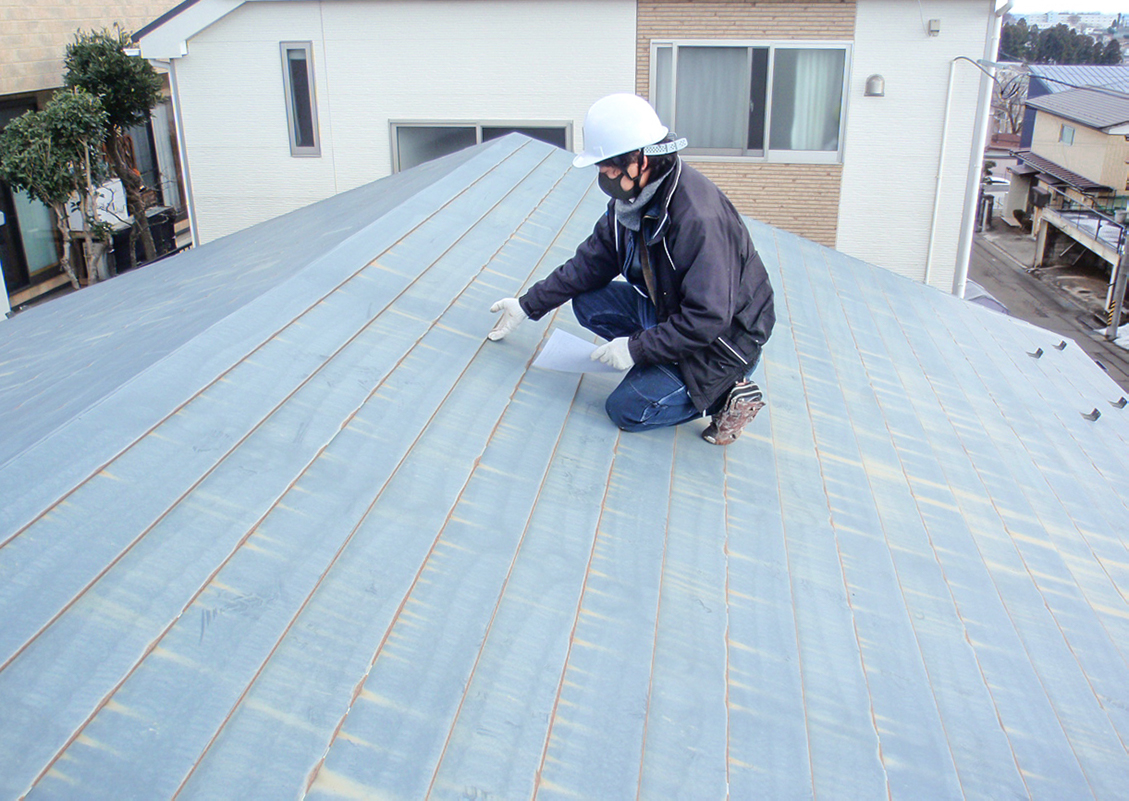 まずは屋根をプロの塗装技術者が調査診断いたします。直接屋根の上に登って、しっかりと屋根の状態を確認いたします。